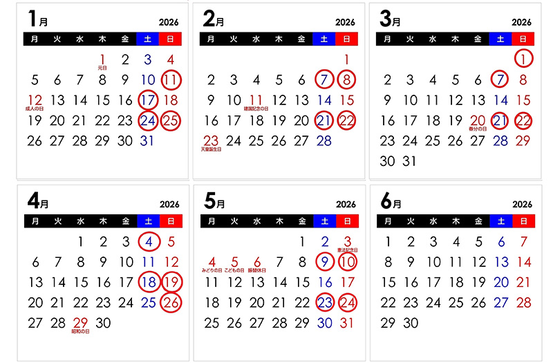 | 2月 | 7日、21日 | 8日、22日 |